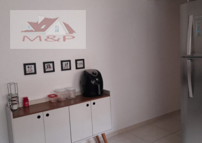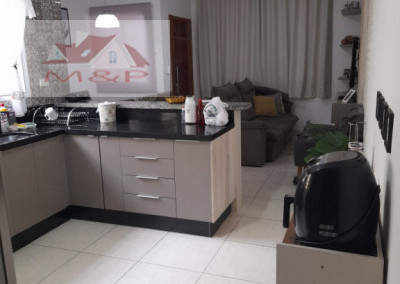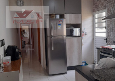 De garagem coberta, sala cozinha, um banheiro social, casa contendo 2 quartos um com suíte. Casa com edicula nos fundos. Casa com armários planejados.