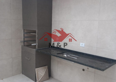 Lazer: Espaço gourmet com churrasqueira integrada.