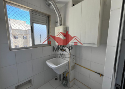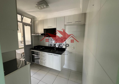 Cozinha prática com área de serviço e 1 vaga de garagem coberta.