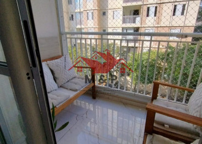 Um diferencial é a sacada envidraçada com cortina de rolo blackout. Os banheiros são planejados e possuem fechamento soft.