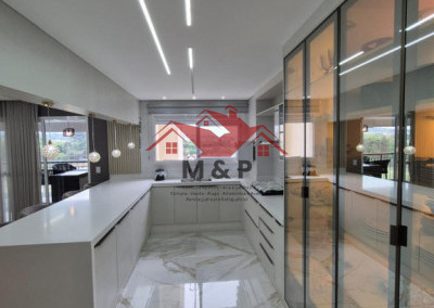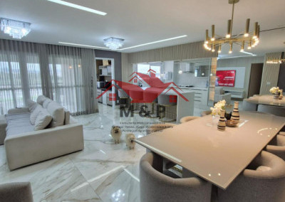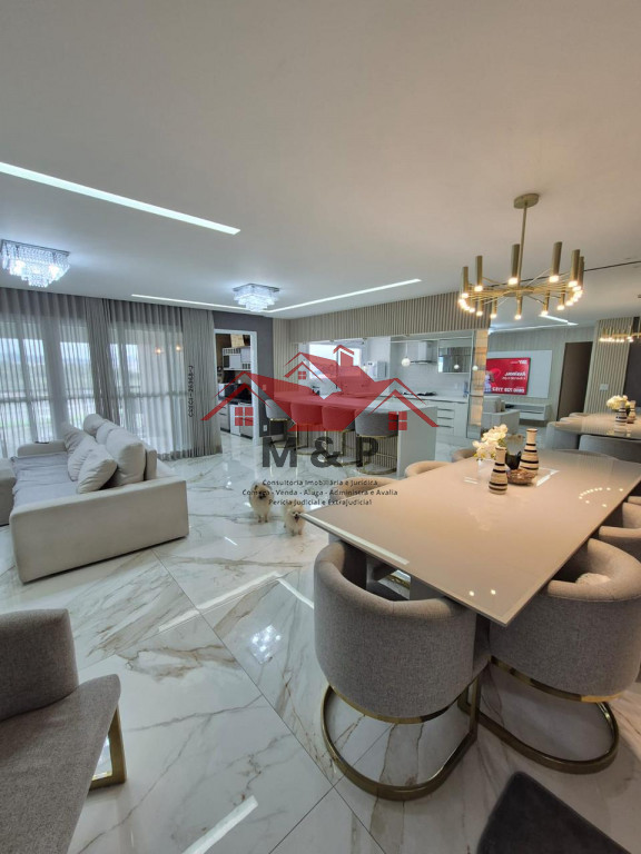 Ampla sala com potencial para múltiplos ambientes, cozinha moderna e áreas de serviço.