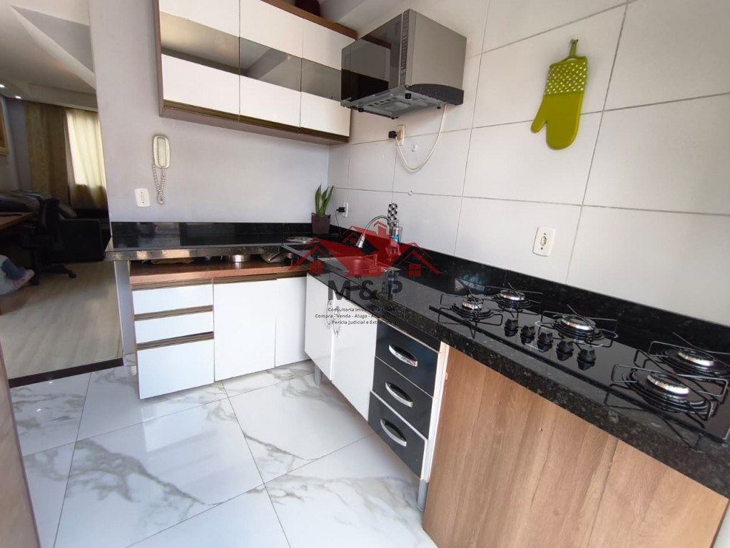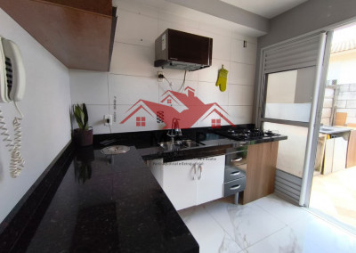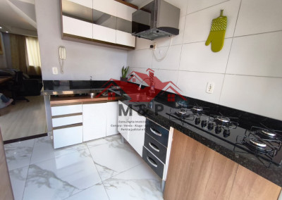 Cozinha: Bem iluminada (sol da manhã), com bancada em mármore São Gabriel, cooktop instalado e piso novo em porcelanato.