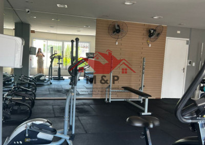 O condomínio oferece lazer completo com piscina e academia.
