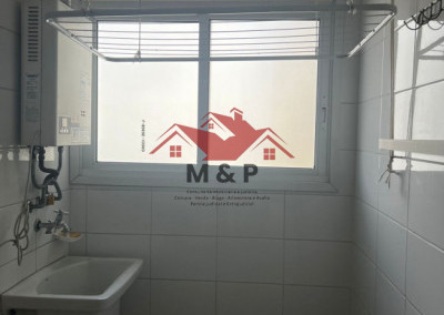 A estrutura interna conta ainda com uma área de serviço prática.