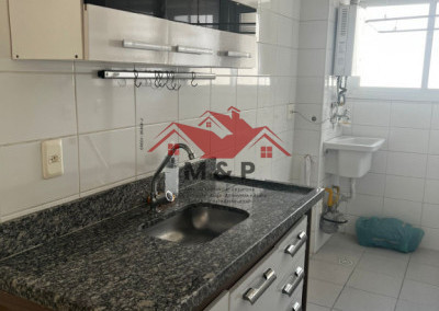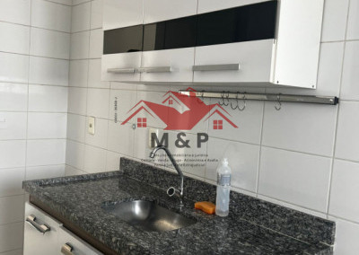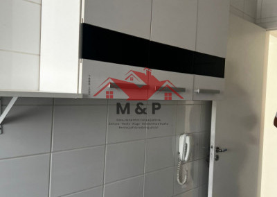 A cozinha já vem equipada com armários planejados.