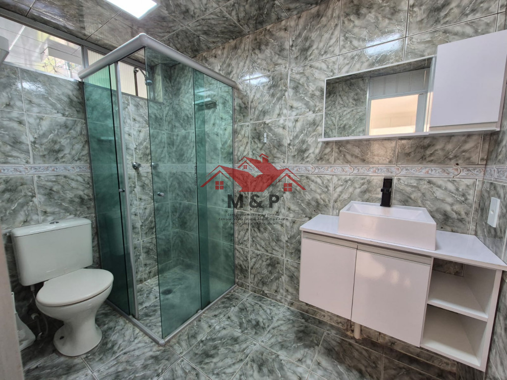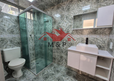 O banheiro social é completo e o imóvel já possui aquecedor instalado.