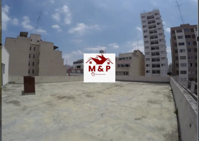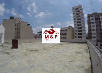 A cobertura possui um amplo terraço com área livre, ideal para espaços de convivência ou eventos corporativos.