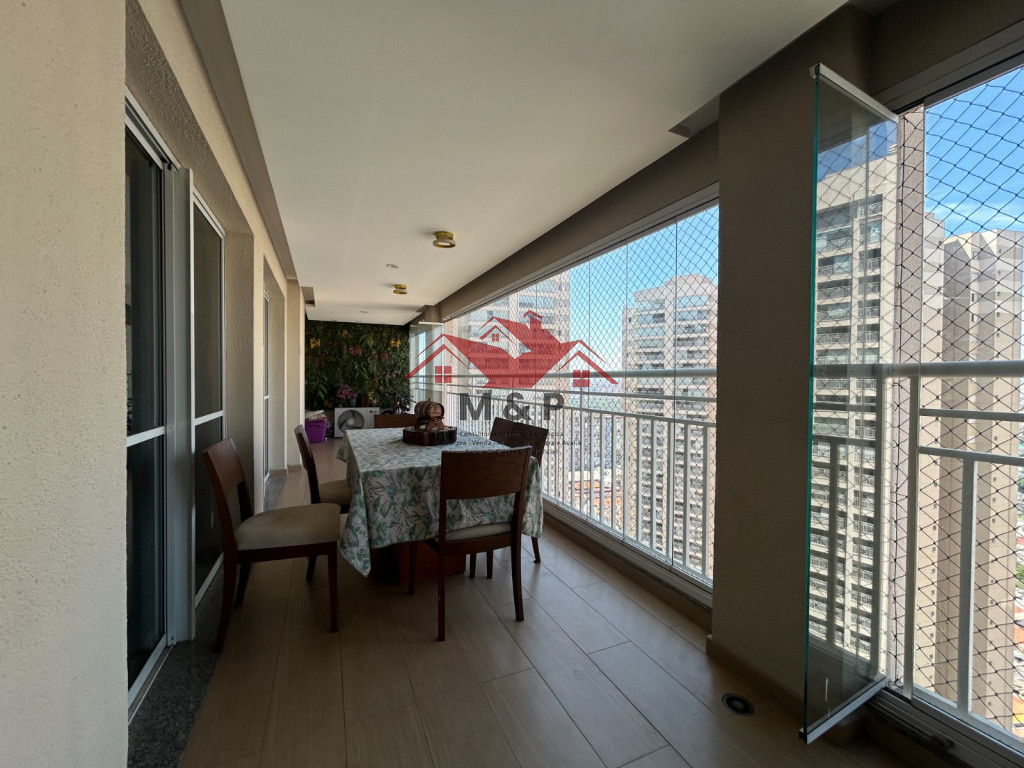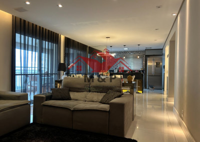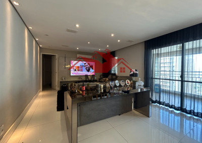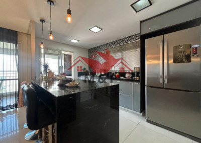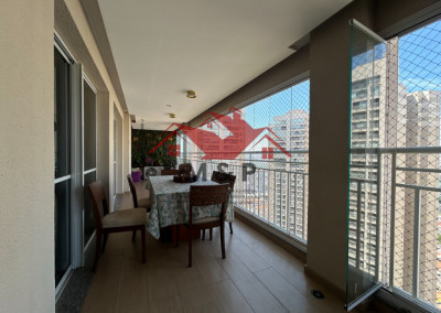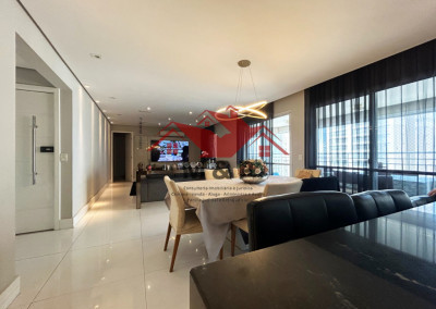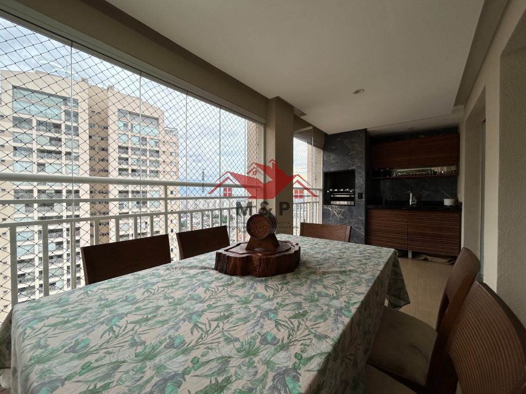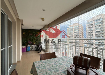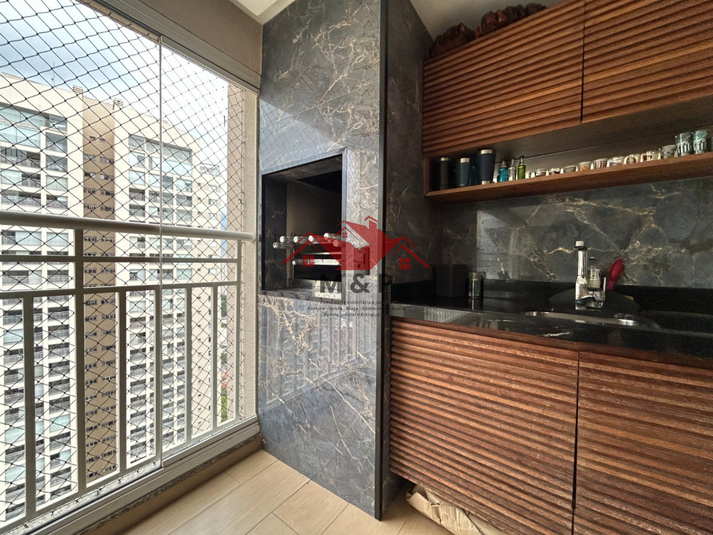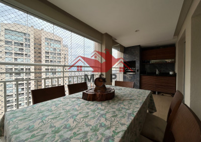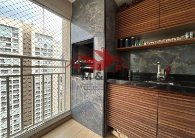 O apartamento oferece uma ampla varanda gourmet.