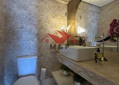 O imóvel possui a maior planta do condomínio, com um total de 150 m² de área privativa.