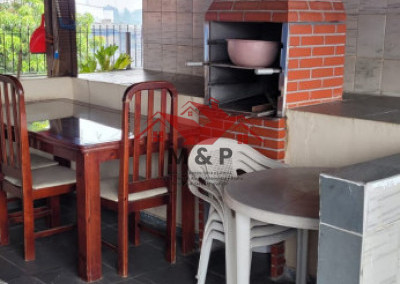 O espaço conta com churrasqueira.